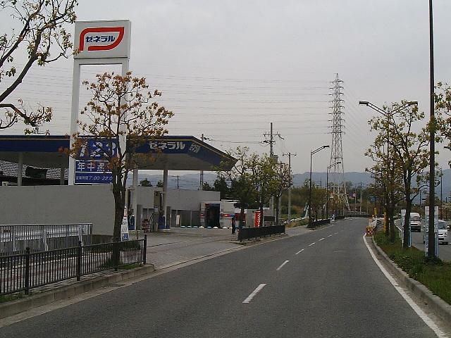 進行方向左手にゼネラルのガソリンスタンドがありますので、
